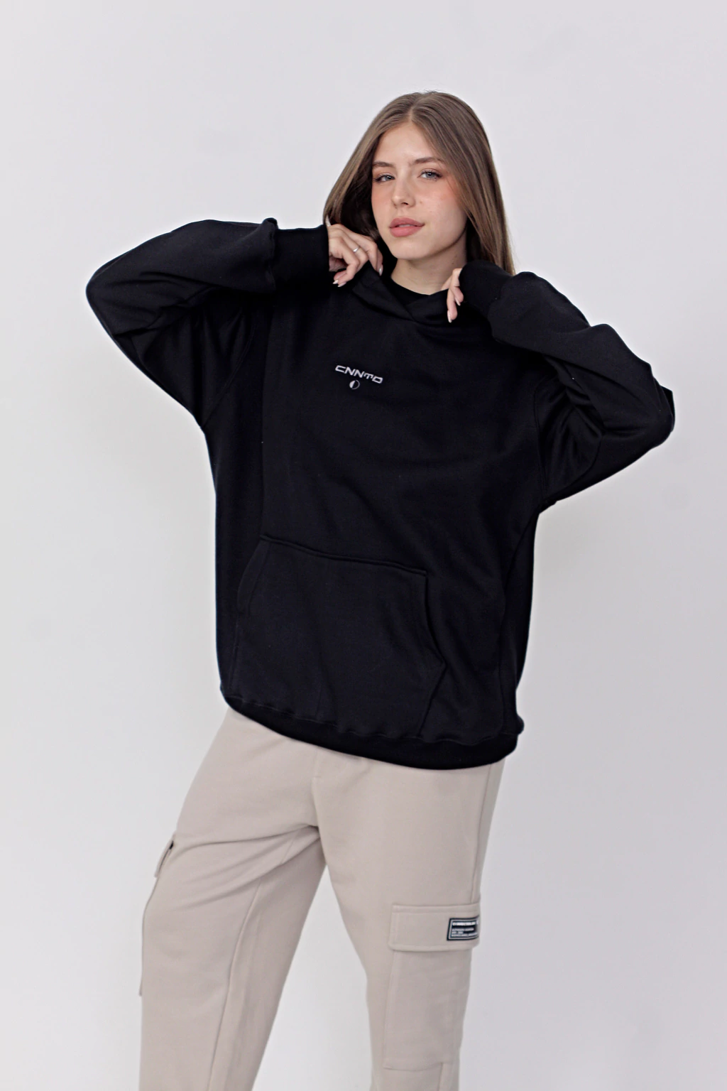 Hoodie - "B004" presenta un corte oversize con costura de alta calidad.